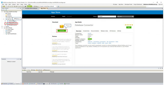 ModelerからMendix Marketplaceを表示し「Databadr connector」モジュールをダウンロードします。
