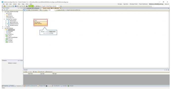 ①「Databadr connector」をダウンロードしたModelerで、DomainModelに、結果取得用のエンティティを作成します。