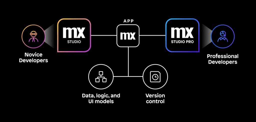 Mendixは長年にわたり、ノーコードおよびローコード開発のデュアルIDEアプローチを採用し、アナリストからリーダーまで広く支持されてきました。StudioとStudio Proは同じモデリング言語と単一のモデルリポジトリを共有しており、2つのIDE間の双方向統合によって情報の翻訳が失われることはありません。
