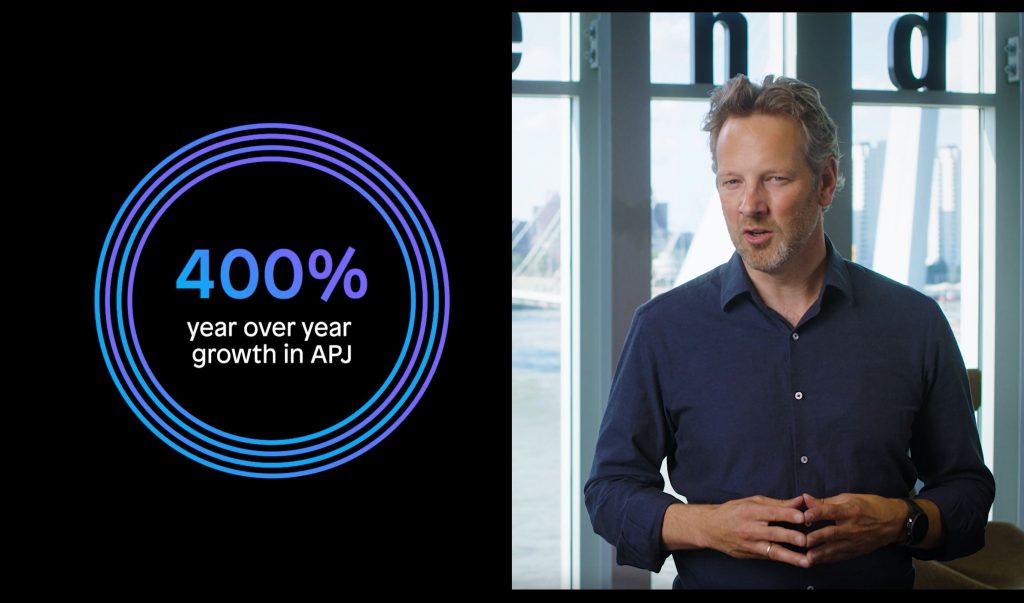 過去1年間で、これらのサービスが更新され、世界的に主流になっているため、これはMendix9への明らかな言及だと思います。今年は革命的というよりは進化的であるというヒントがあると思います。次に、Derekは、Mendixの収益が2019年と2020年の合計を超える道を進んでいると述べています。 Derekは、APACだけでの収益が昨年と比較して400%増加したため、APAC地域についてさらに言及しています。ローコードの強みと価値がアジアでさらに拡大していることは、顧客と潜在的な顧客にとってこの素晴らしいニュースだと思います。