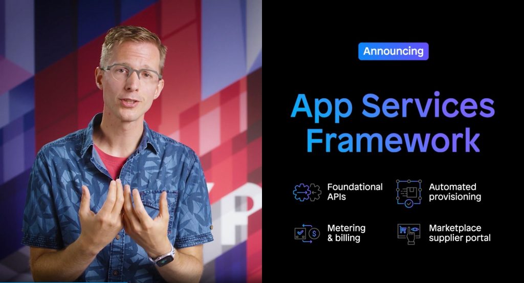 さて、話はJohanに戻り、JohanはApp Service Frameworkの発表を行いました。ここでは、初日にDerekが語った12のアプリサービスについても触れています。Johanは、シャドーITに頼らずに人材のプールを拡大することで、Assembling Makersの必要性を訴えています。