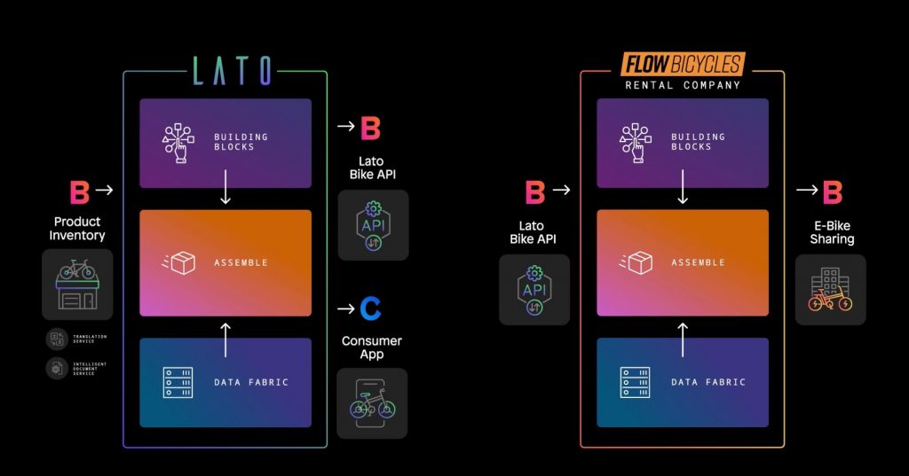 今回の基調講演で発表された新機能の概要が紹介されました。続いて、オランダの自転車レンタル会社「Flow Bicycles」を例に、LATOのビジネスモデルのデジタルトランスフォーメーションを企業がどのように適用できるかをビジュアルで説明します。