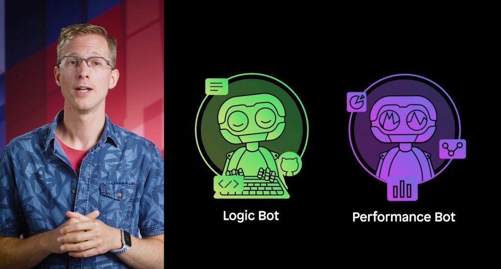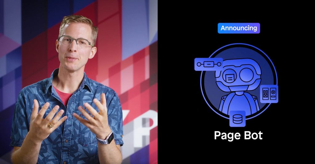 続いてJohanは、MendixにおけるAIの話題に焦点を導きます。ロジック・ボットとパフォーマンス・ボットが高速であることをアピールし、ウィジェットを提案したり、ページの自動設定を行うページ・ボットを発表した。